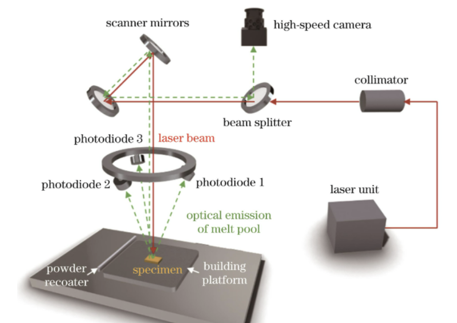 - Spectroscopy-based monitoring: Spectrometers collect spectral signals of the molten pool plasma. Analysis of characteristic line intensity and relative intensity ratios yields data on material composition, element content, plasma temperature, electron density, and other information. This method reflects the metallurgical process of the molten pool from a microscopic perspective and helps detect potential defects caused by abnormal material composition, but requires high-precision spectrometers and strong environmental interference suppression.