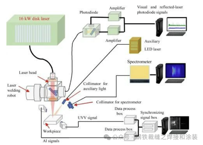 At present, common welding monitoring technologies include laser spectroscopy, infrared radiation technology, electromagnetic wave nondestructive testing technology, and acoustic detection technology. Among them, laser spectroscopy is a detection technique based on atomic emission spectroscopy or molecular absorption spectroscopy, mainly used for online detection of alloying elements and impurity elements during welding. Infrared radiation technology utilizes the linear relationship between the intensity of infrared radiation emitted by matter at thermal equilibrium and temperature to realize real-time monitoring and control of the temperature field during welding. Electromagnetic wave nondestructive testing technology mainly detects defects such as incomplete penetration and Hastelloy cracks in welded metals by observing the propagation characteristics and anomalies of electromagnetic waves. Acoustic detection technology identifies welding defects such as porosity by analyzing acoustic signals generated during welding.